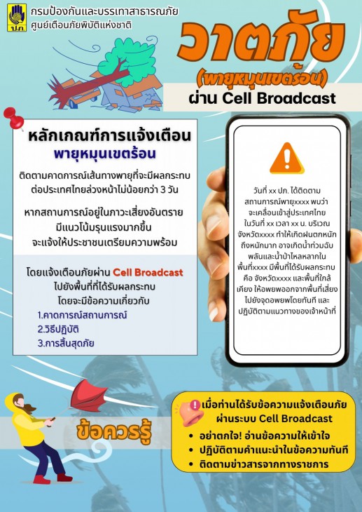 ประชาสัมพันธ์และสร้างการรับรู้การใช้งานระบบแจ้งเตือนภัยผ่านสัญญาณโทรศัพท์เคลื่อนที่ (cell broadcast)