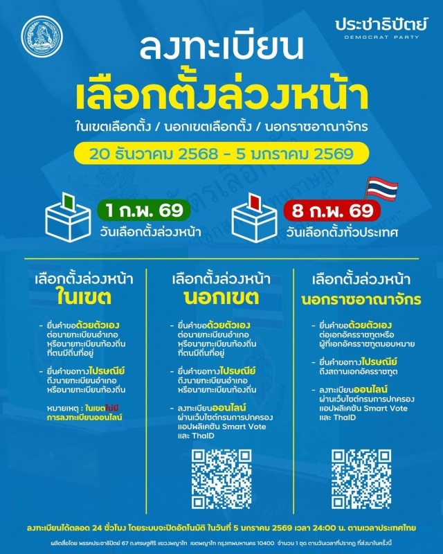 ลงทะเบียนเลือกตั้ง สส. ล่วงหน้า